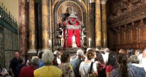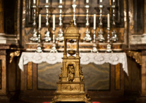(Agosto 3, 1821) Estos últimos días he visto muchas cosas de la historia del anillo de boda de María, pero con tantos sufrimientos y molestias no soy capaz de contarlas de forma coherente. Hoy he visto fiesta en la iglesia de Italia donde se encuentra este anillo de boda. Me pareció que estaba colgado en una custodia encima del Tabernáculo. Había allí un altar soberbiamente adornado en el que, a través de mucha plata, se podía mirar profundamente por los intersticios. Vi que tocaban la custodia con muchos anillos.